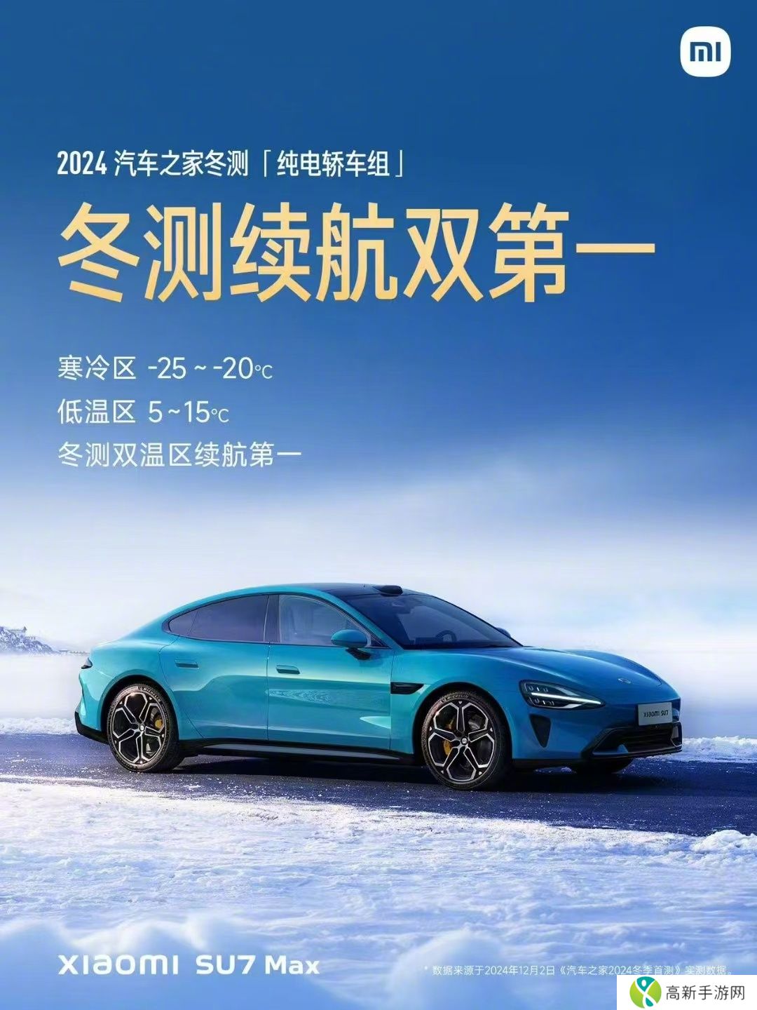 本站 12 月 8 日消息,小米创办人、董事长兼 CEO 雷军昨晚发微博称,在汽车之家 2024 年冬测的纯电轿车组续航实测中,小米 SU7 取得了寒冷区、低温区续航双区第一。