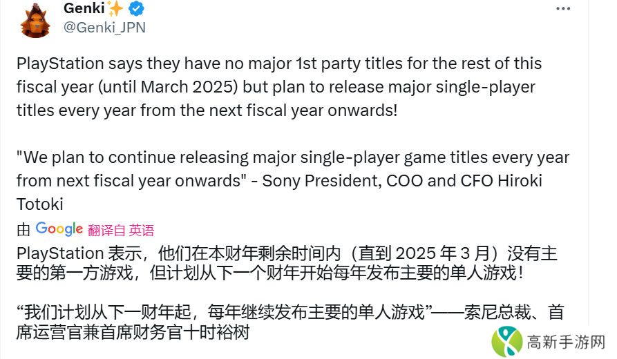 不过,十时裕树也强调在此之前,也就是本财年剩下的时间内,SIE并没有大型第一方游戏要推出。