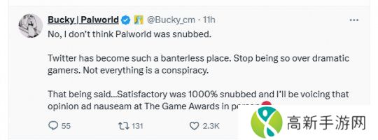 而后在各大游戏奖项评选中,《幻兽帕鲁》也都未获得提名,这与其所取得的国际影响力完全不成正比。因此,不少玩家都在网上为其鸣不平。但Pocketpair 的社群经理Bucky却在呼吁玩家们冷静点,并表态:“这次的提名名单不存在任何阴谋。”