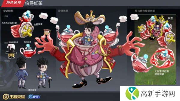 首先我们先来看一下刘禅的伯爵红茶这款皮肤,刘禅的伯爵红茶这款皮肤属于电玩系列的皮肤,这款皮肤主色调是以红色为主,刘禅这位英雄的形象也是非常卡通的,刘禅坐在茶壶里面,手中拿着红茶,非常的好看。