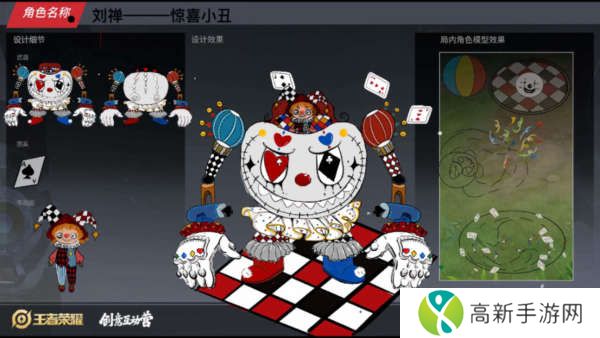 第三款名为惊喜小丑,这款皮肤也是玩具系列的皮肤,皮肤颜色是以多巴胺为主的,这款皮肤感觉作者的主体设计的有些问题,刘禅本人太小了,人偶太大了。而且因为有针角,感觉是一个破烂的玩偶。