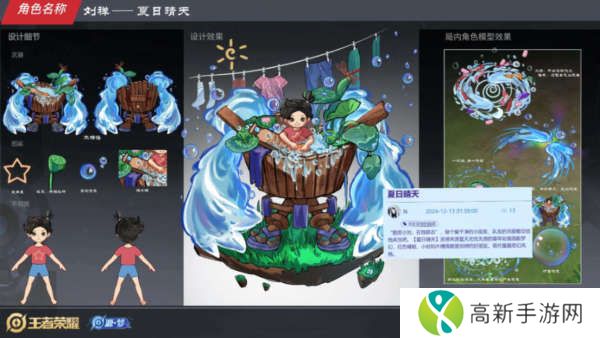 然后就是刘禅的夏日晴天这款皮肤,这款皮肤是以园艺为主的,感觉刘禅在木桶里面泡澡一样,看着比较特殊。