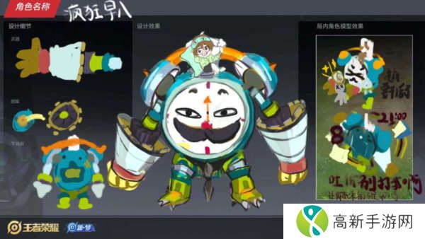 第四款名为疯狂早八,这款皮肤属于那种抽象的皮肤,刘禅本人也不是特别明显,感觉设计也不是特别精美,所以在众多设计稿中,刘禅的这款皮肤热度也就一般。