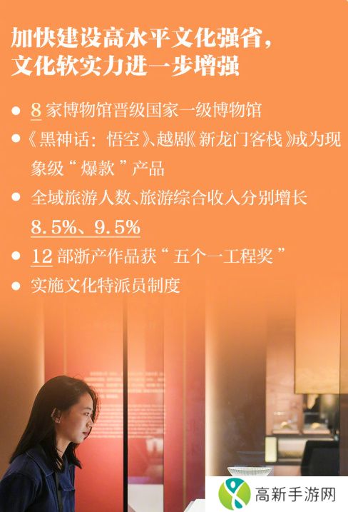工作报告称今年浙江将进一步支持优秀文化走出去,推动国潮精品、影视出版、文创动漫等优质产品出海;推动文旅深度融合工程,发展“文化+科技”“文化+数字”“大视听+旅游”“交通+旅游”新模式,打造更多文旅“爆款”产品。