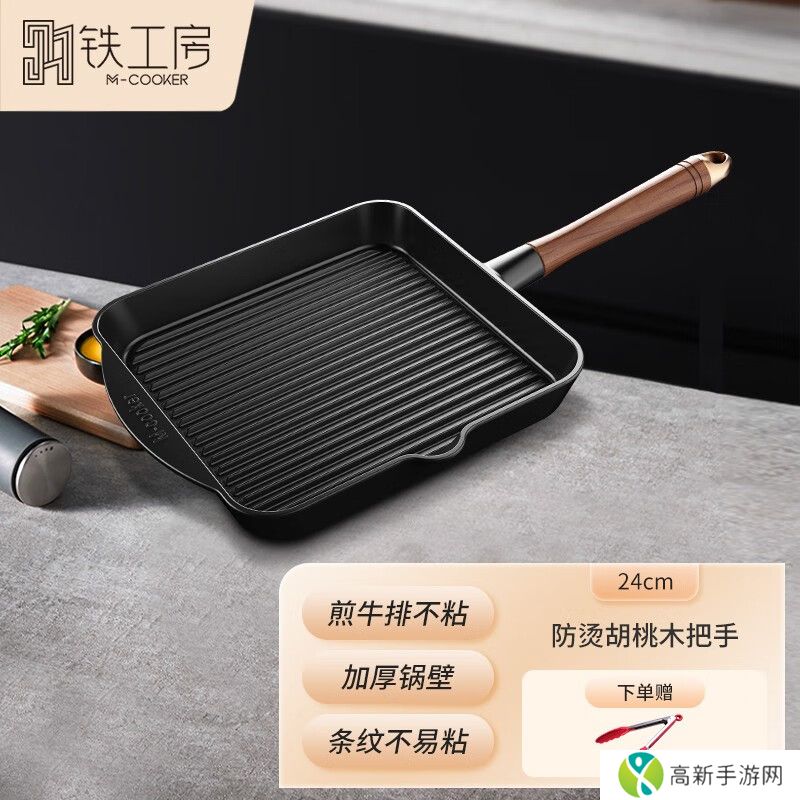 京东铁工房 铸铁牛排煎锅 24cm 日常售价 158 元凑单后 68 元直达链接多多同款现售 169 元,百元大差价。