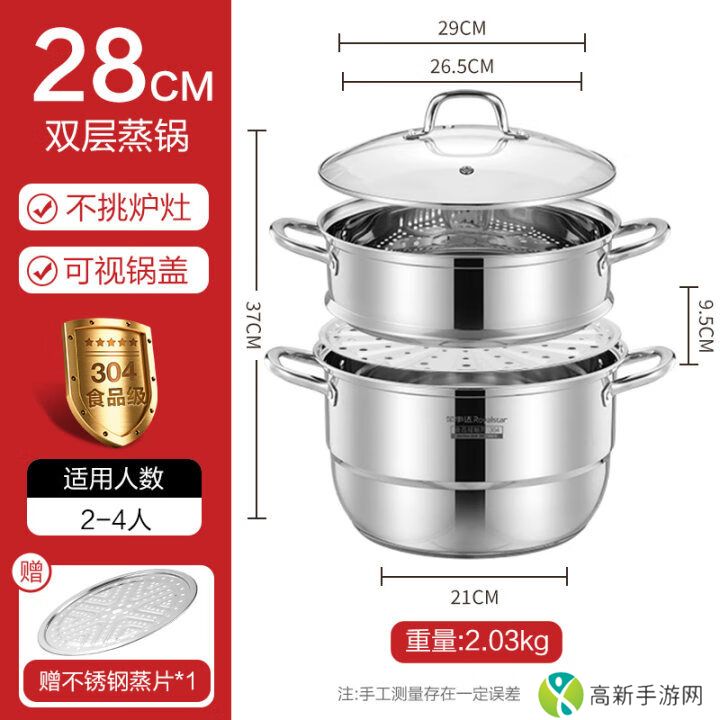 京东荣事达 304 双层蒸锅 28cm 加厚不锈钢凑单后 49 元直达链接