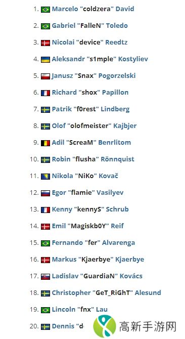 以下为2016年HLTV 年度最佳选手Top 20名单: