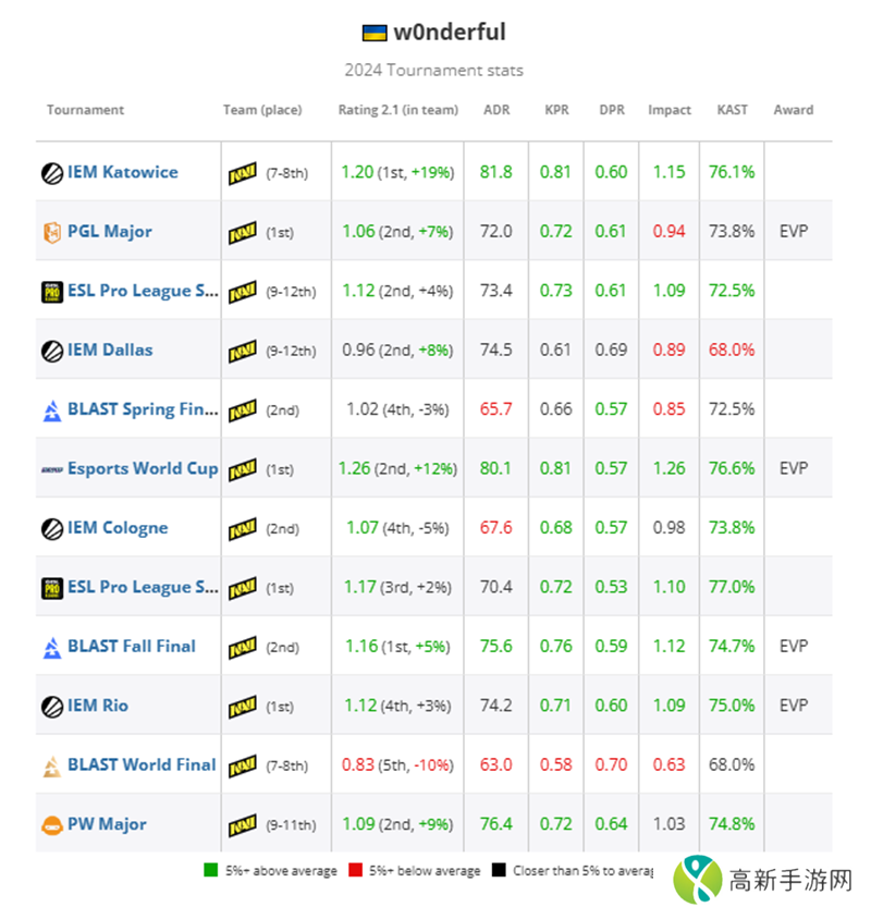w0nderful在Natus Vincere令人印象深刻的2024年中获得四项EVP,首次跻身TOP20选手榜单。