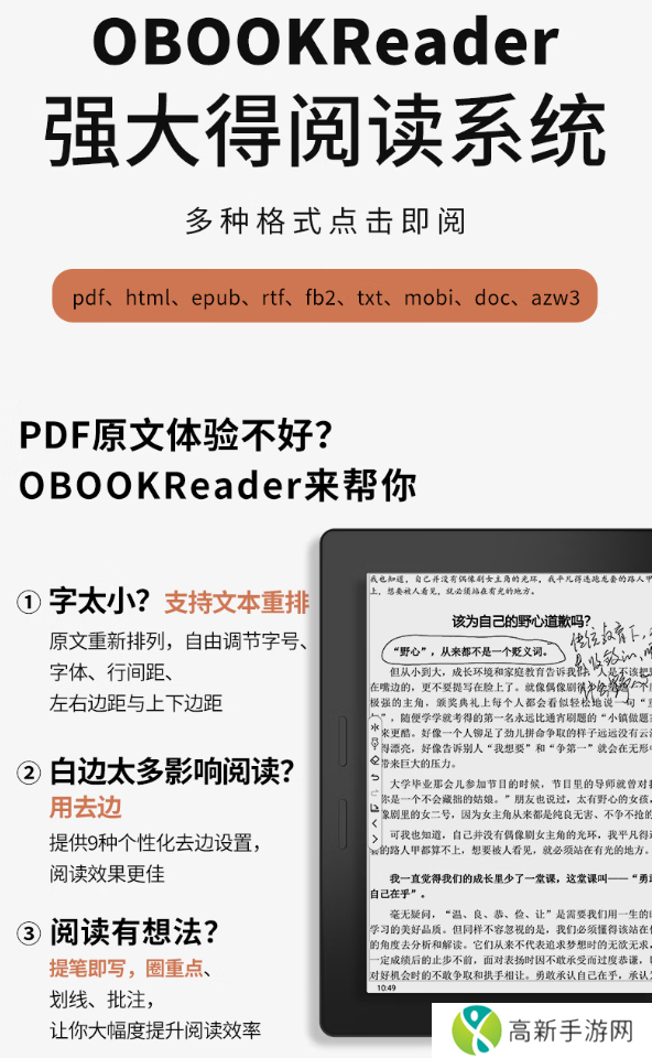 该款读写本提供 USB、WiFi、微信、网盘等传书方式,支持查阅 pdf、html、epub、rtf、fb2、txt、mobi、doc、azw3 等格式文件。读写本还拥有电容笔配件,支持仿质感书写,内置铅笔、圆珠笔、钢笔、马克笔等字迹效果。
