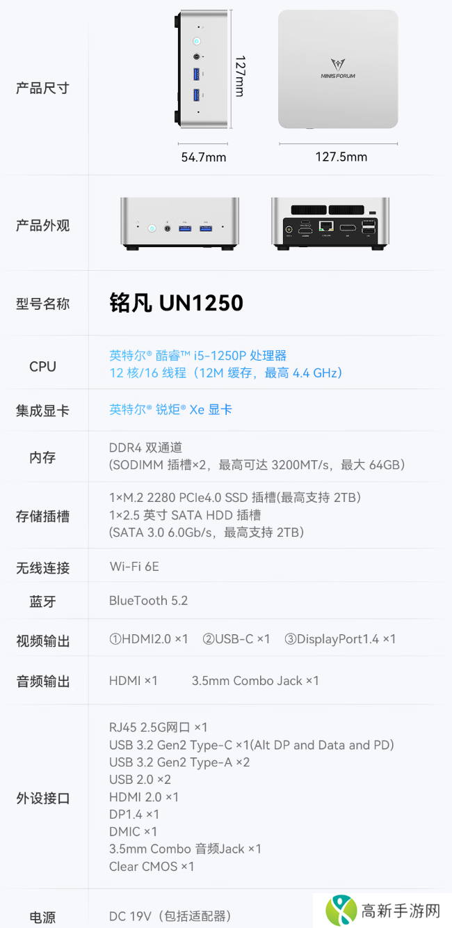 京东铭凡 UN1250 迷你主机 i5-1250P 处理器 | 满载状态风扇噪音 43dB1599 元起领 300 元券