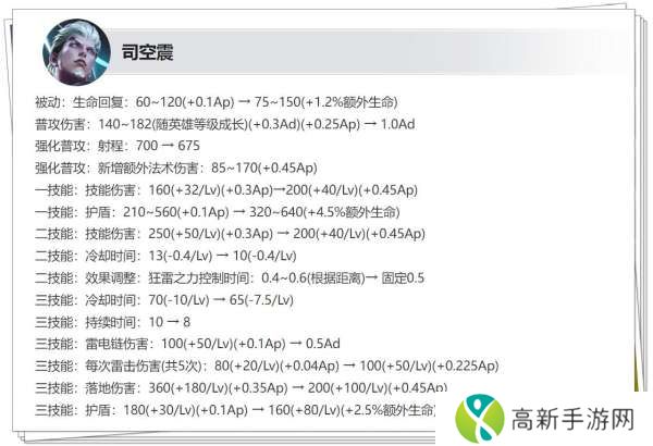 12月5日,王者荣耀正式服版本更新,司空震迎来了一次数值全面重做。