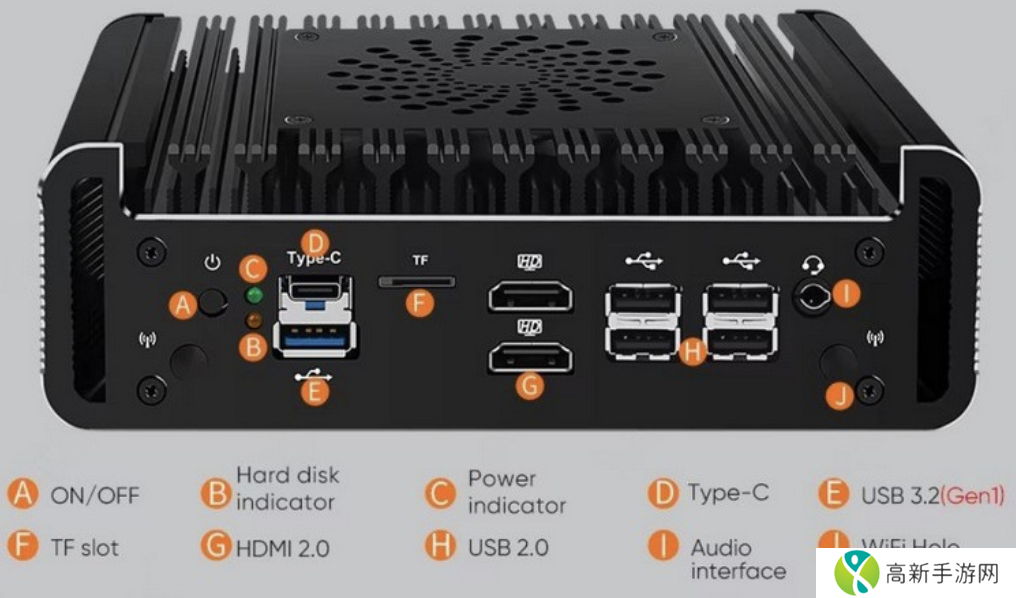 该机可选4核心英特尔N100或8核心酷睿i3-N305处理器,至高可选32GB RAM和1TB PCIe 3.0 NVMe M.2 SSD,同时提供了额外的2.5英寸SATA 3硬盘位,主机使用被动散热,顶部带有大量散热鳍片。