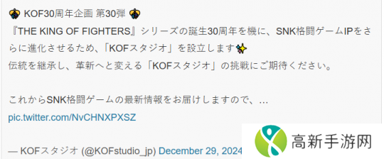 近日,格斗游戏老厂SNK宣布设立拳皇KOF工作室,作为系列诞生30周年新策划,主旨是格斗系列名作的继承发展与进化。·KOF工作室,是SNK让格斗游戏IP更加进化后的新工作室,继承传统,推动革新,值此《