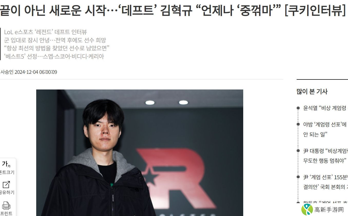 直播吧12月4日讯近日韩媒kukinews采访了前KT下路选手Deft,Deft将在未来服一年半的兵役。Deft透露自己结束兵役后的未来。