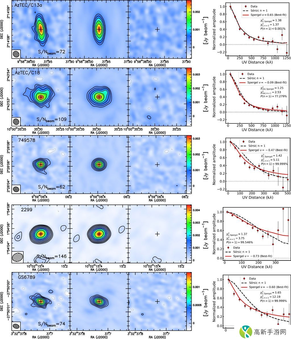 研究团队通过统计分析发现,大多数样本星系的亚毫米波辐射非常紧凑,其面亮度轮廓明显偏离盘状星系光强度的典型指数盘模型分布,表明这些星系的核心区域很可能已经形成了类似核球的结构。