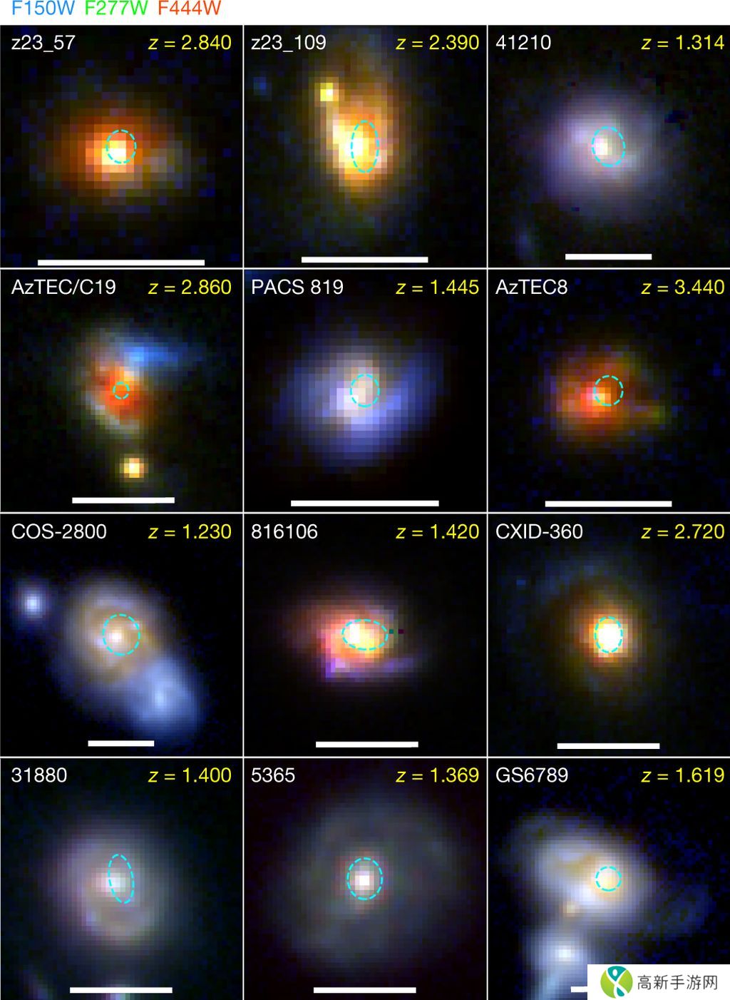 这些星系的红移可以追溯到“宇宙正午”时代,即距今约 80 至 120 亿年前,当时大多正在经历大规模的恒星形成活动。