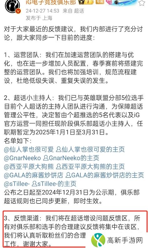 对此iG今日在超话发布整改公告,称将对运营团队进行加强培训,避免之后再出现严重失误!!