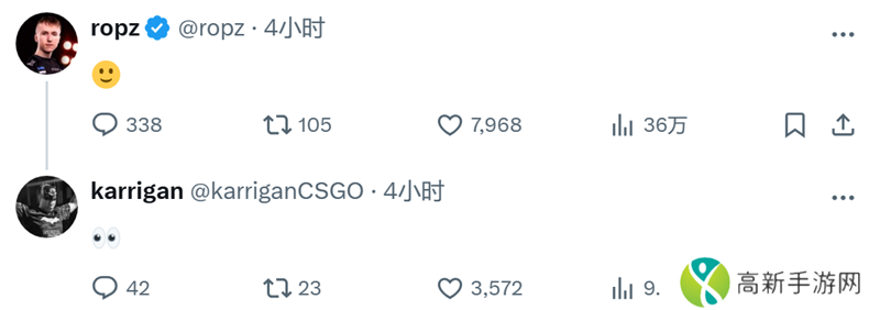 而FaZe指挥karrigan也在评论中发布了“眼睛”的表情,ropz本人则也回复了同样的表情。
