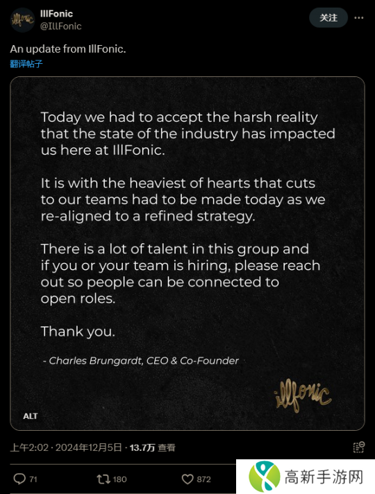 开发商首席执行官兼创始人之一 Charles Brungardt? 在社交媒体上写道:“今天,我们不得不接受残酷的现实,即行业现状对我们 IllFonic 产生了影响。今天我们怀着沉重的心情对我们的团队进行了裁员,作为我们对战略进行进一步完善的一部分。”