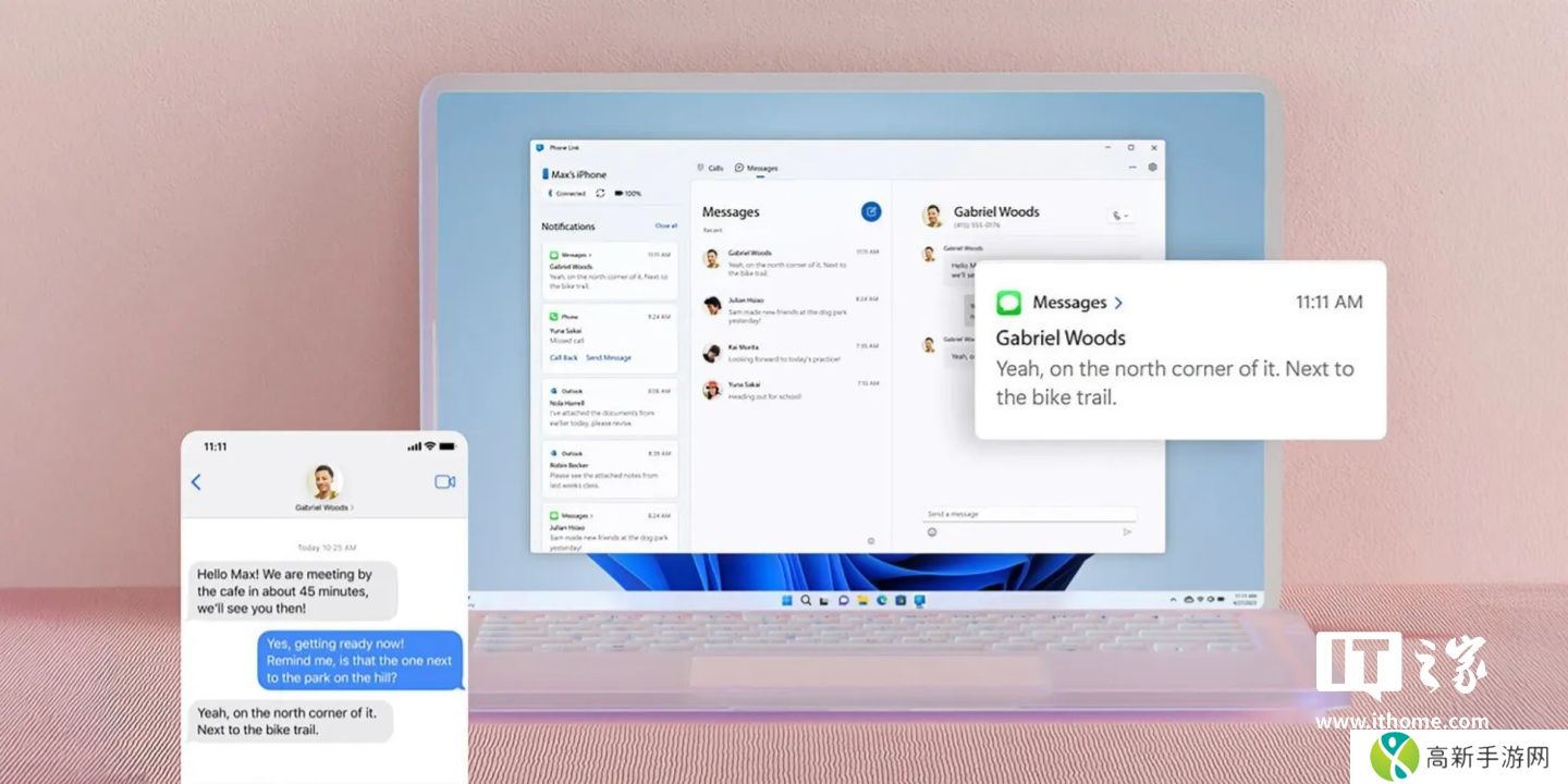 据本站了解,连接配对后,用户可以直接在 PC 上查看手机通知,甚至接听电话。不久之后,Phone Link 还将支持设备之间的文件共享。在 Windows 系统中,用户在点击共享文件时,会看到手机作为一个可选项。而在 iOS 设备上,“链接至 Windows”应用将作为共享扩展程序出现。