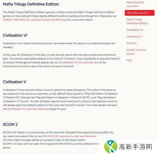 此外《文明5》、《四海兄弟三部曲终极版》和《幽浮2》等游戏的直接启动有所不同,需要按照官方说明进行操作,例如《文明5》会和之前一样优先启动DirectX选择选项,需要玩家手动进行选取。