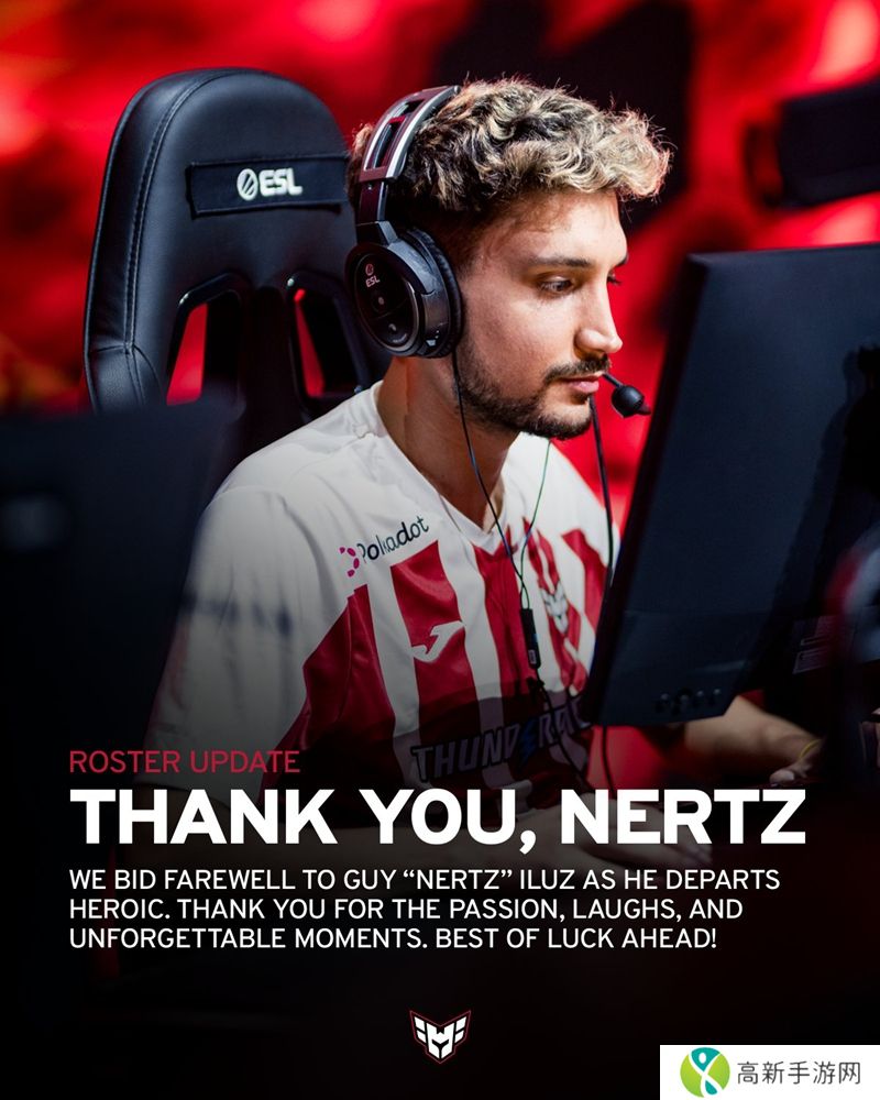 “感谢你,NertZ。我们向NertZ告别,他离开了HEROIC。谢谢你的激情,欢笑和与你度过的难忘时光,祝你好运!”