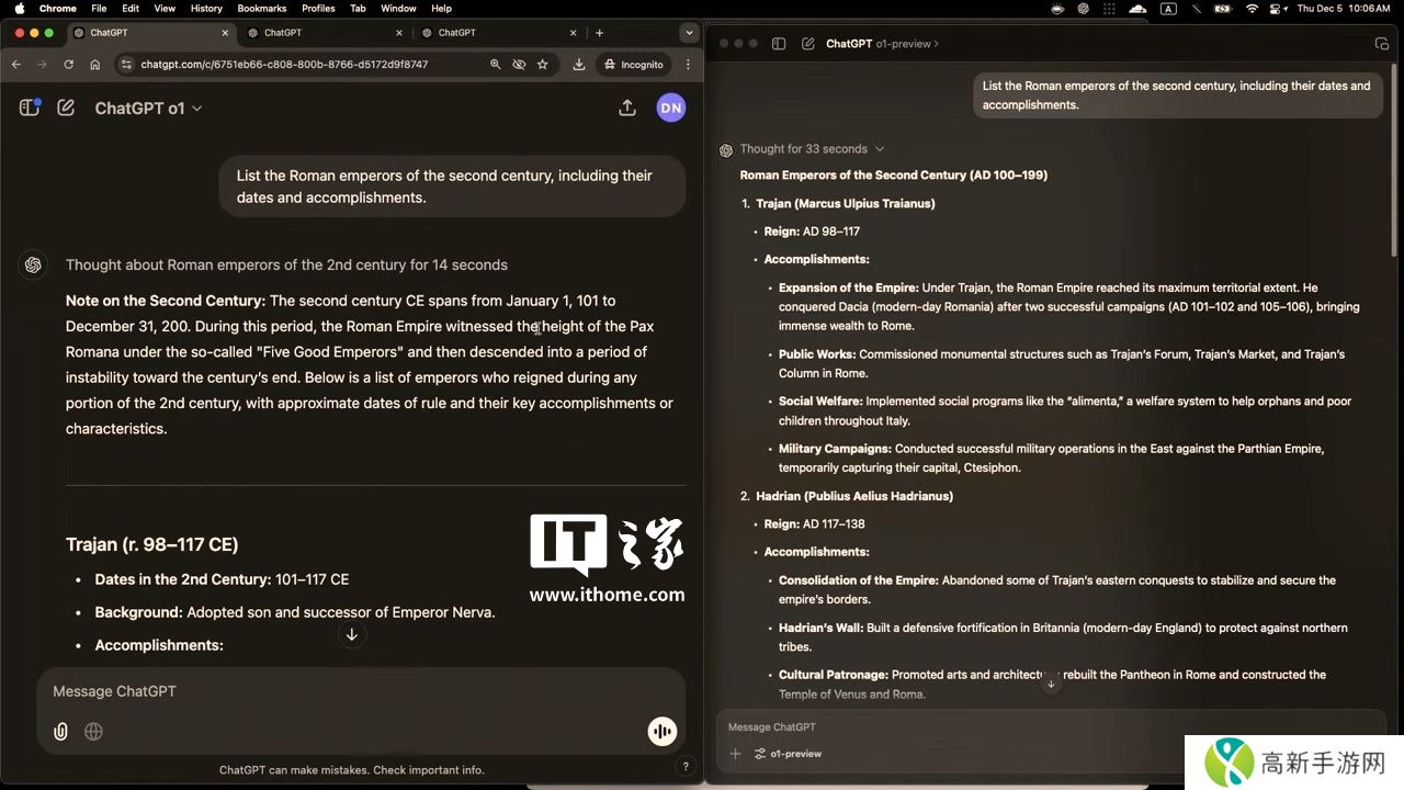 此外 ChatGPT Pro 订阅服务用户还可以独家享受特别版本 o1 模型,该版本使用更多计算资源来为最难的问题提供最佳答案(称为 o1 pro 模式)。