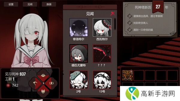 你将扮演一位见习期死神,收割灵魂偿还债务。随机的抉择事件为你提供多种选择:反正灵魂还不完,躺在床上摆摆烂。跟着前辈赚外快,收集衣服换着穿。见习期死神的命不是命,重来的次数无穷尽。