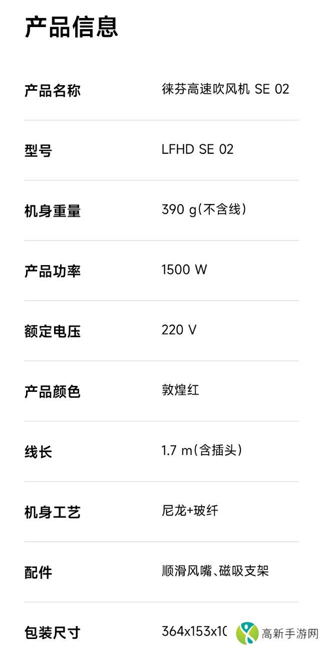 本站附徕芬 SE 2 吹风机参数信息如下: