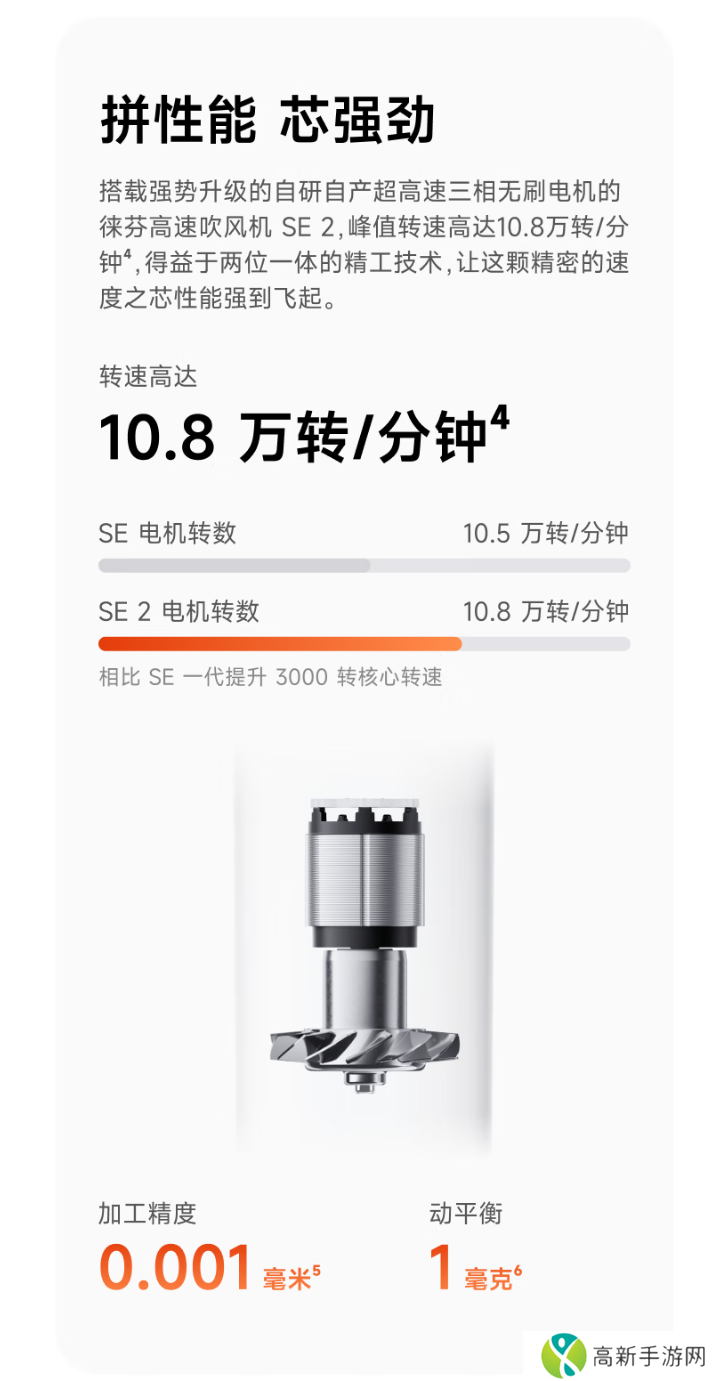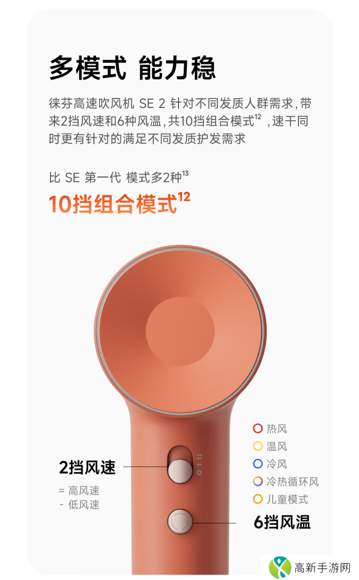 据介绍,徕芬 SE 2 吹风机至高转速 10.8 万转 / 分钟,至高风速 21.5 米 / 秒(号称相比上一代提升 30%),每秒可进行 80 次自动调温,噪音 59 分贝。