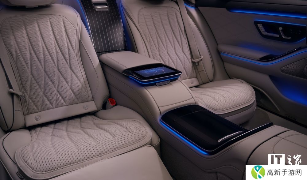 新车配备带有 AMG 操控单元的 Nappa 皮饰 AMG 高性能方向盘,12.8 英寸中央显示屏,后排行政级座椅采用姜形格双缝线皮革材质,座椅特别配备了腿托。此外,新车配备主动式环境氛围灯,结合智能驾驶辅助系统,可在转向或检测到危险时,予以环境光警告。