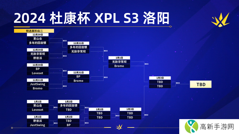 经过海选赛和预选赛阶段一,目前比赛已经进入预选赛阶段二。从12月30日-1月3日,晋级的八支队伍通过双败淘汰制争夺最后一个通往XPL洛阳线下赛阶段的名额。