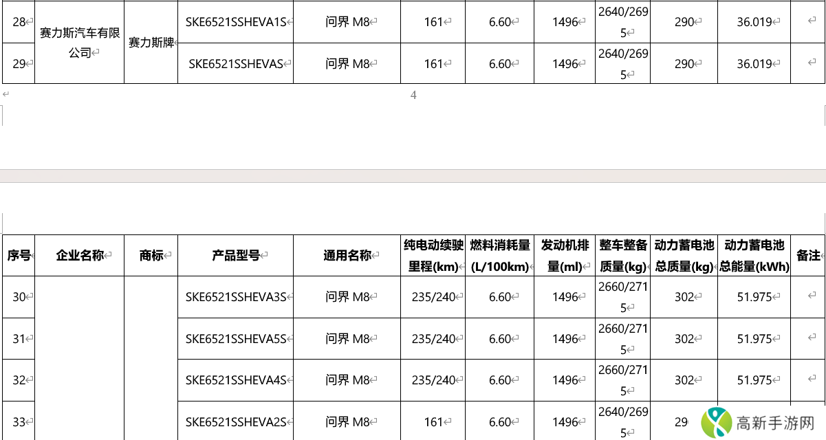 本站从工信部获悉,问界 M8 此次申报了 6 种不同版本车型,提供 161/235/240km 三种纯电续航,燃料消耗量(预计为馈电状态)6.60L / 100km。