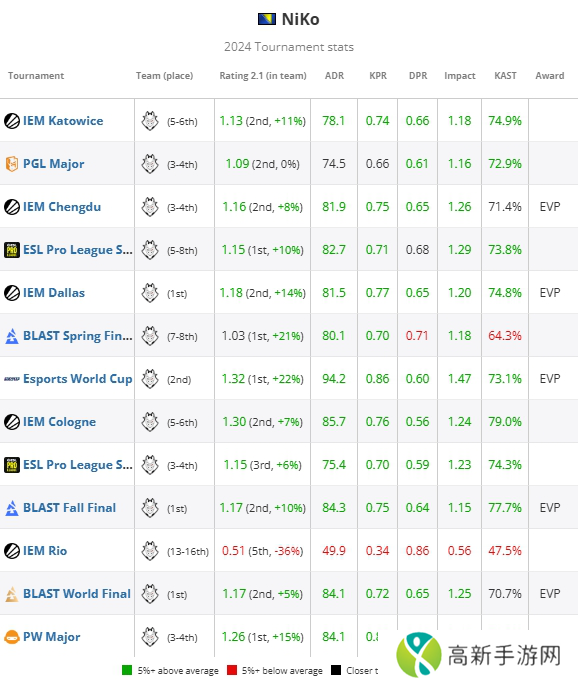 您可以通过查看NiKo在先前Top20榜单上的详细信息,更深入地了解他的职业生涯: