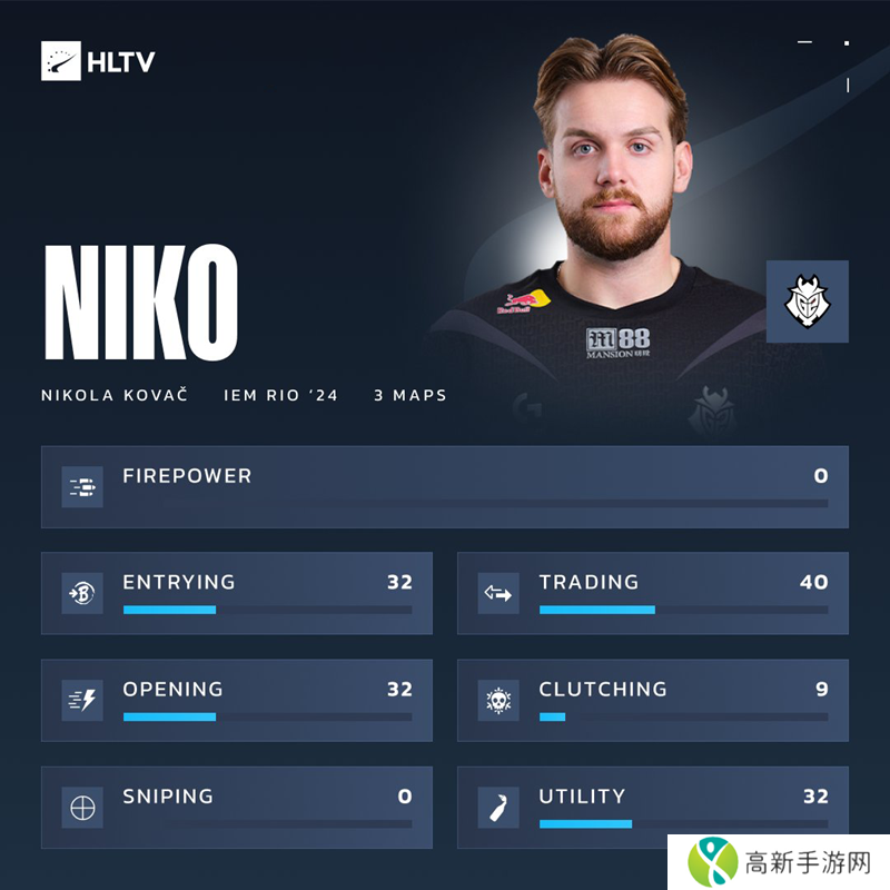 G2在欧洲RMR的表现一如既往,他们以3胜1负的战绩晋级上海Major,其中NiKo以全队最高的1.18 Rating成为比赛的核心。