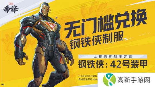 根据官方消息,国服全平台玩家12月6日前往官网即可无门槛领取礼包码,公测开启后即可在游戏内兑换「钢铁侠:42号装甲」制服,官网礼包码也可以在Steam和Epic平台使用。