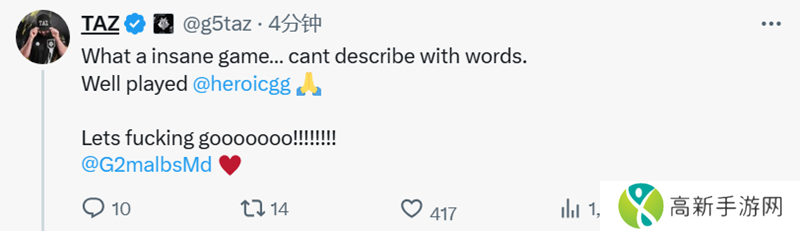 TaZ:多么精彩的一场比赛,难以用语言来形容。