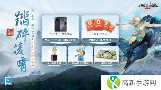 参与”鸡驴赠礼“、"福禄秘库“等新服活动,即有机会抽取心猿、鎏金宝鉴召唤兽(随机)、龙涎丸召唤兽(随机)、大圣装(时装)、一级神兵(随机)、一阶仙器(随机)等游戏道具,更有机会获得2025份红包大礼(最高2025元)、华为Pura70 Ultra手机、龙马金镶玉雕、铜师傅大圣雕像等豪华实物大奖!