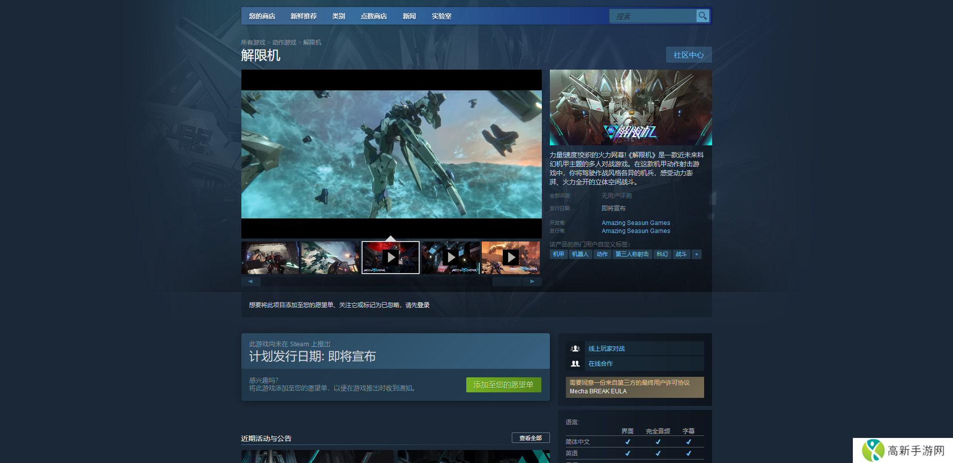 《解限机》是一款非常有趣的近未来科幻机甲主题的多人对战游戏,而这款游戏的下载网址就是购买平台的购买页面,比如Steam版就是在购买页面购买之后,点击页面中的马上开玩就可以开始下载了。