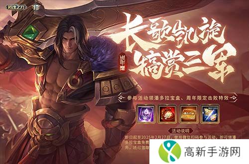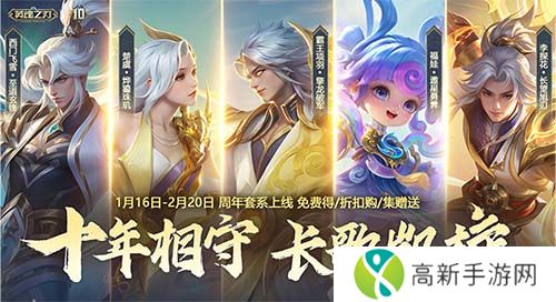 十周年全新套系【长歌凯旋】来袭,西门、探花、福娃新皮肤免费送,项羽、楚虞皮肤折扣得!全新坐骑踏雪乌骓低至1折,参与活动收集徽章送卡牌边框,还有机会获得限定加速特效!