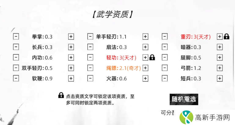 天纵之才:人杰之表,万中无一,天资聪颖,可提前解锁比当前武学境界高一级的装备类物品,无视其境界需求。消耗天赋点:3