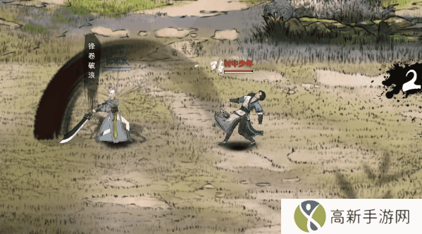 主动招式:手持重刃旋转,造成2次外功攻击范围伤害,并造成吹飞效果。旋转过程中控制移动方向(影响属性:武力)