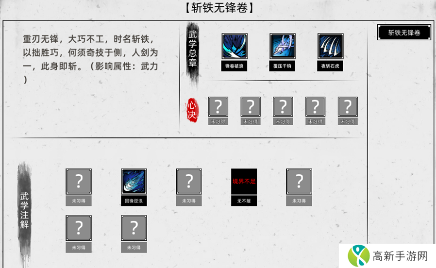 这个【斩铁无锋卷】,就是我们从杜颜白处获得的关于重刃的功法,其中会有三个招式可供我们使用,如果是野外爆的功法的话,大部分都是残篇,许多招式都无法习得。