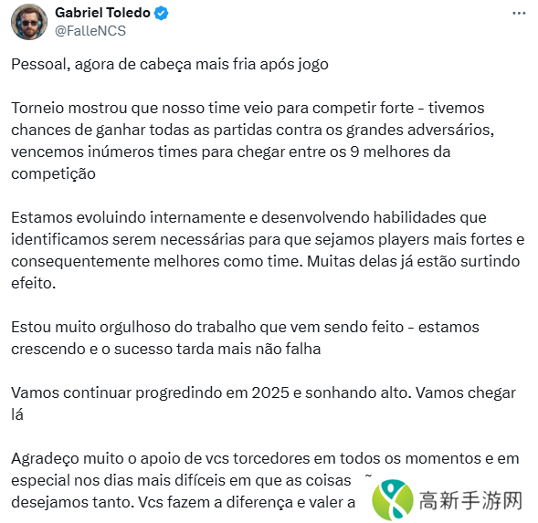 FURIA战队指挥FalleN就队伍被淘汰出局一事发表了自己的看法。在个人社交媒体账号上,巴西教父表示战队正在进步过程中,为队伍目前取得的成果感到自豪。
