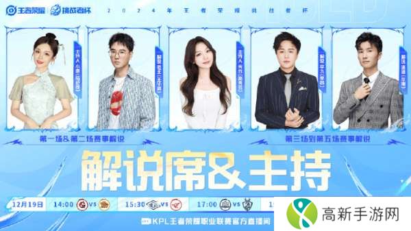 解说席&主持人:解说小鹿 (陆舒媛)、解说老王ww (王华斌)、解说李九 (李昂)、解说天云 (高天云)、解说潇洒洒 (李潮)