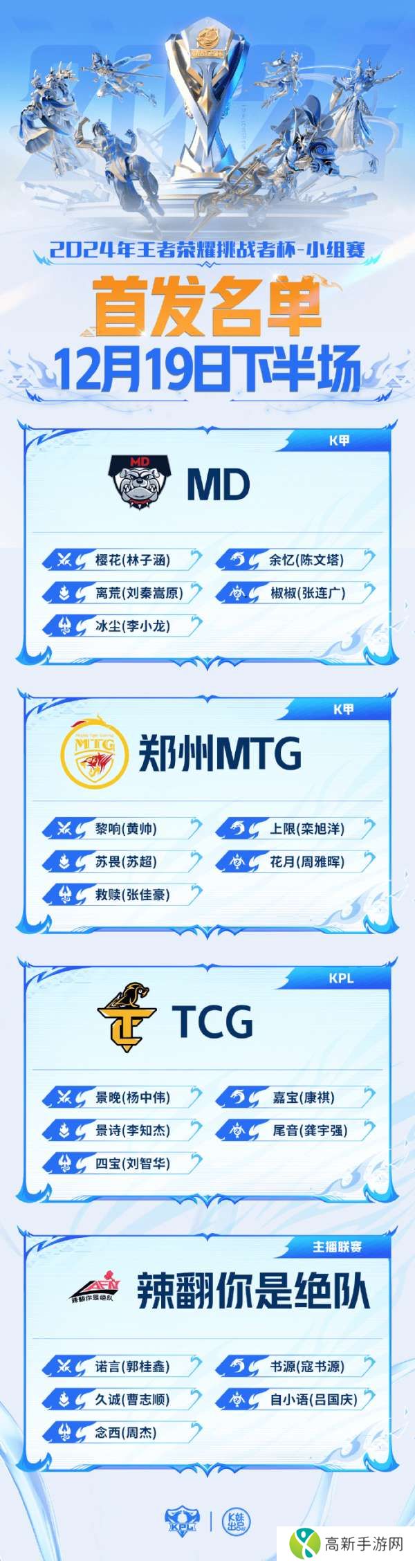 2024年王者荣耀挑战者杯 小组赛W3D1【首发名单】送达 !