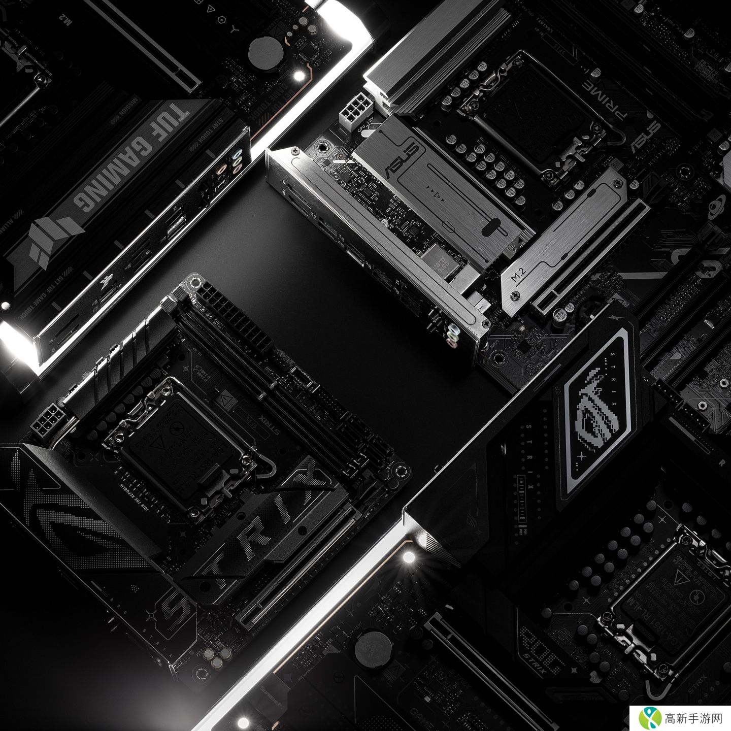 本站注意到,华硕海报中包括至少四款新品,包括PRIME 大师系列、TUF Gaming 电竞特工和 ROG STRIX 猛禽系列,左下角这款似乎还是一款 ITX小板。