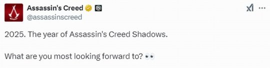 育碧官方也发推文称:“2025将是《刺客信条:影》之年,你最期待什么”。由此可见,育碧对《刺客信条:影》信心满满!