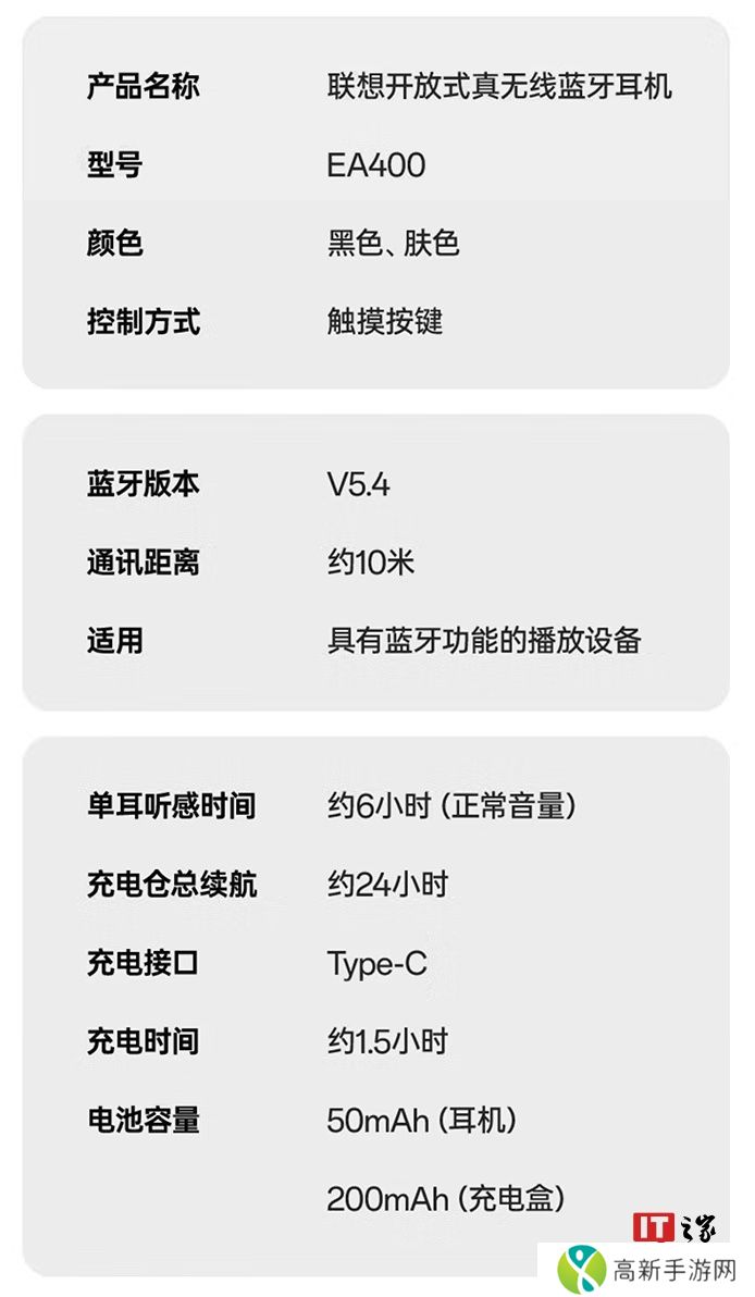 本站 1 月 14 日消息,联想现已在京东上架一款型号为 EA400 的“G 型耳夹设计骨传导耳机”,这款耳机主打“IPX5防水防汗、空间音频”,定价为199元。