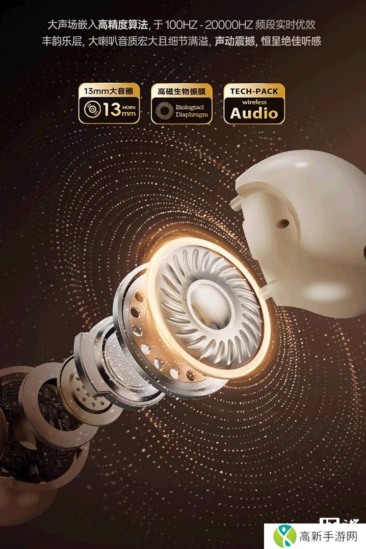 该耳机配备13mm音圈,支持定向传音技术,耳机本体配备50毫安时电池,续航6小时,在配备充电盒的情况下续航至高24小时。